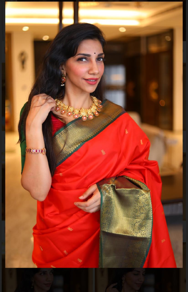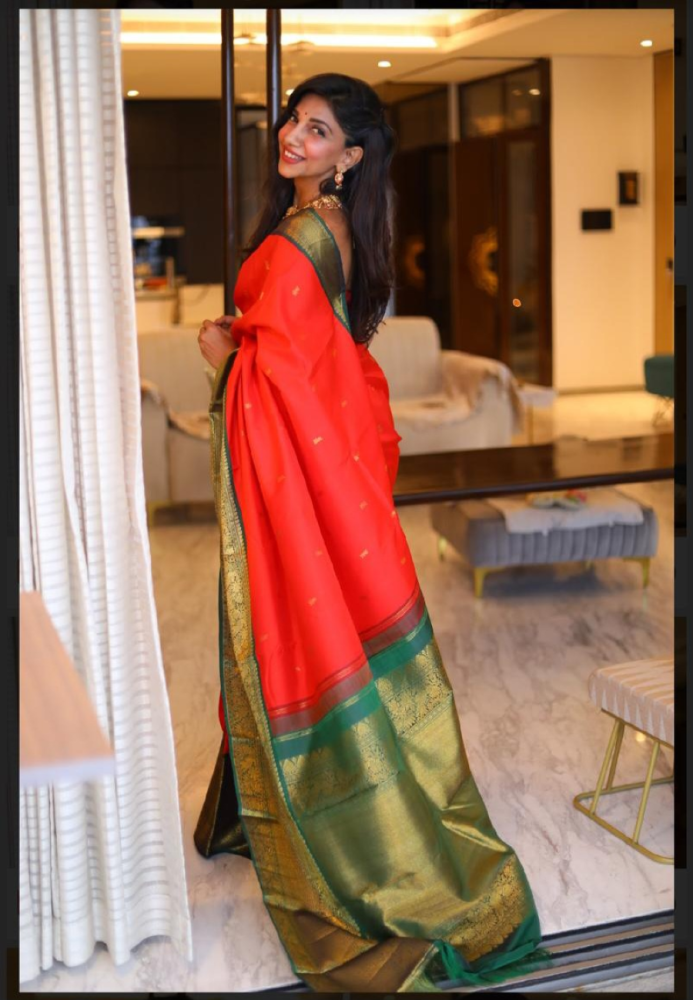 Ahimsa silk wedding saree with woven Jacquard pallum pazham pallu