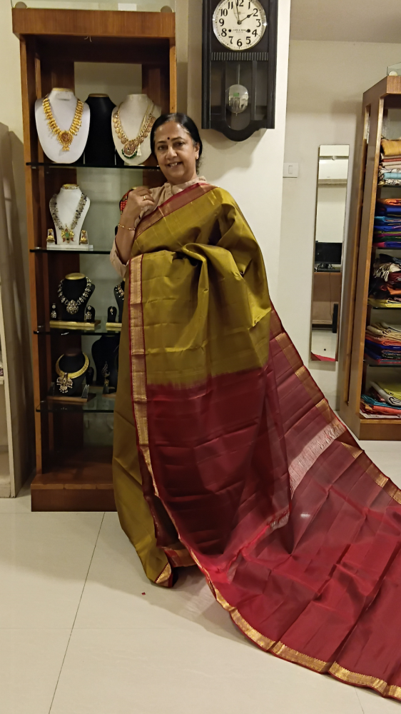 Mallimottu Buttes Ahimsa Silk with contrast Pallu