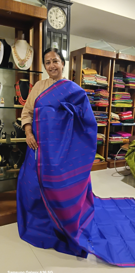 Ahimsa silk with small border rich pallu saree