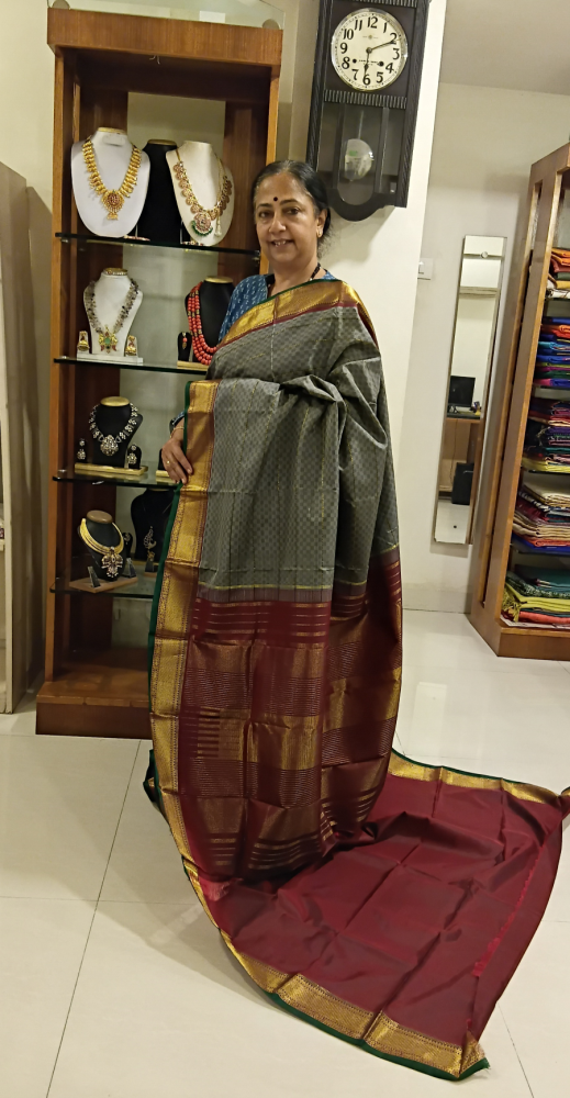 Nut Brown Zari Checked In Golden Silver Grand And Traditional
