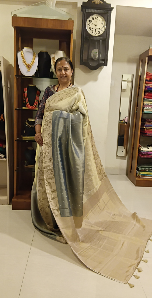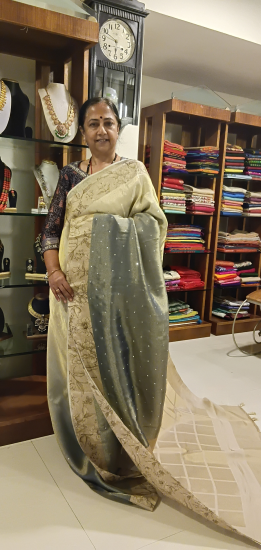 Faded satin tissue tussur silk with foil work