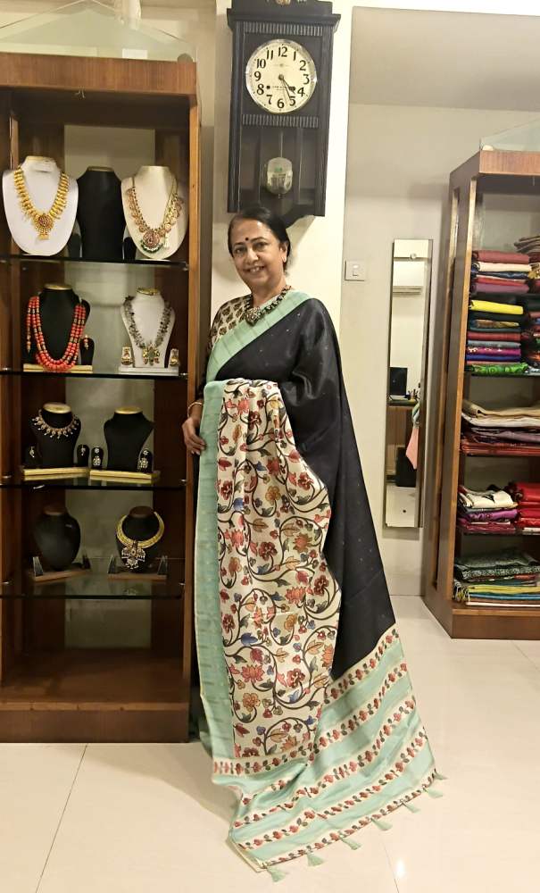 Zari checks tussar with kalamkari work