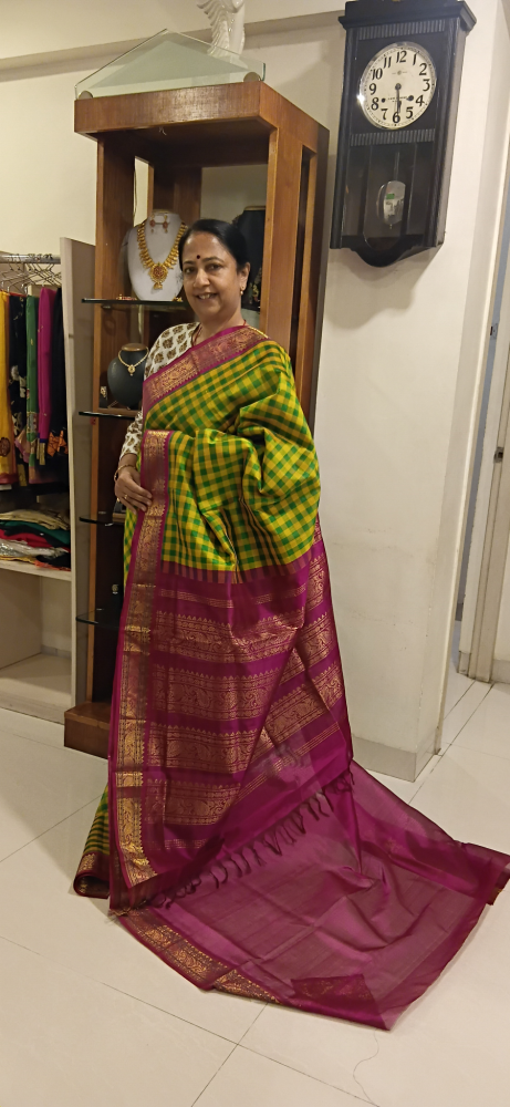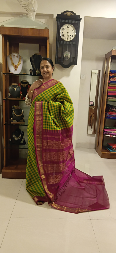 Pallum pazham checks silk cotton saree