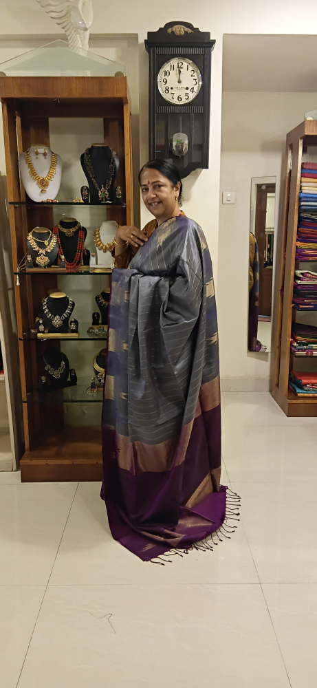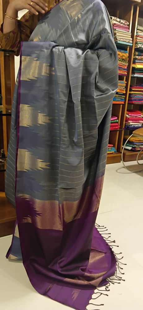 Zari checks double pettu Ahimsa silk saree