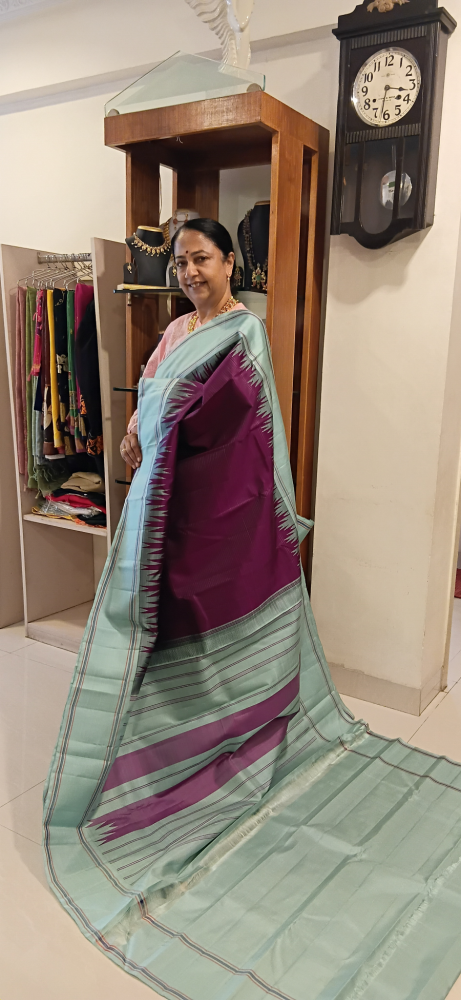 Korvai temple border saree with tissue border and pallu