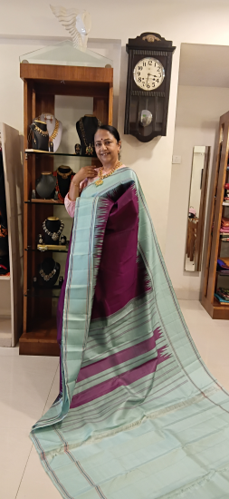 Korvai kalashetra saree with dark purple with grey contrast border