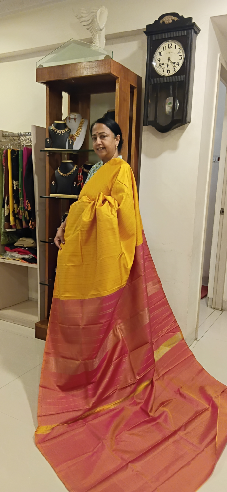 Mallimottu Buttes Ahimsa Silk with contrast Pallu