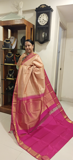 Ahimsa silk saree with kalashetra border with rich zari pallu
