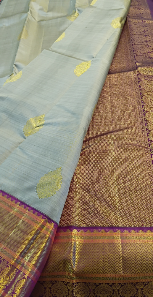 Korvai ahimsa silk saree with annapakshi and butte in body