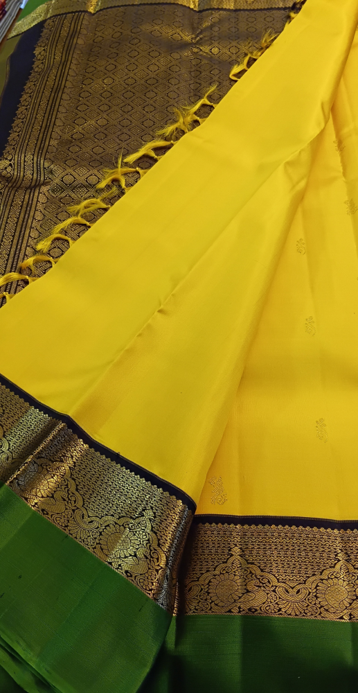 Uneven pyramid jacquard border with rich butte all over wedding saree