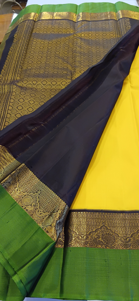 Vazhaithandu lines Ahimsa silk saree with korvai border