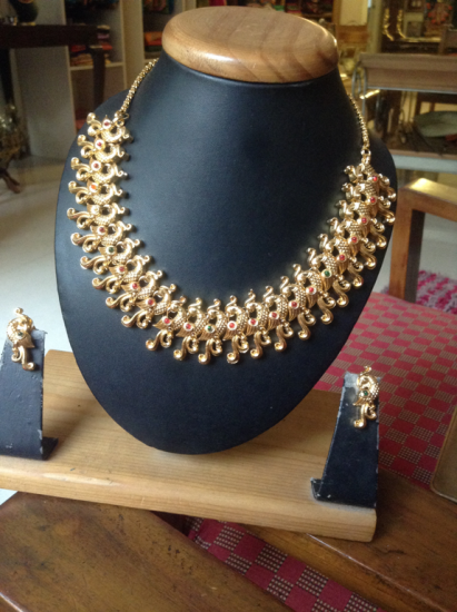 Maroon Silver Manga Malai Set In Traditional Style Electroplated With