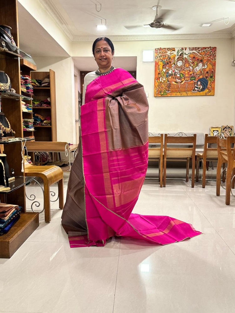 korvai Ahimsa silk with with ganga jamuna two colour borders